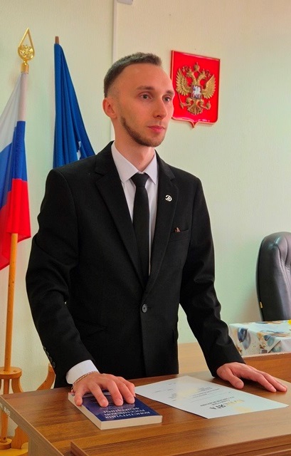 Сегодня в Холмском городском суде состоялось торжественное принесение присяги судьи. Постановлением Сахалинской областной Думы от 11 июня 2025 № 6/9/158-8 мировым судьёй судебного участка № 19 Холмского района назначен на трехлетний срок полномочий Алексей Кудин. В торжественной обстановке мировой судья принёс присягу: «Торжественно клянусь честно и добросовестно исполнять свои обязанности, осуществлять правосудие, подчиняясь только закону, быть беспристрастным и справедливым, как велят мне долг судьи и моя совесть». Так, согласно Закону РФ «О статусе судей в Российской Федерации», звучат слова присяги. После её принесения, судья может приступать к отправлению правосудия. Со вступлением в должность и принесением присяги мирового судью поздравили врио председателя Холмского городского суда Евгения Алексеевна Закурдаева и коллектив суда, которые пожелали коллеге успехов в осуществлении правосудия, достижения намеченных целей, дальнейшего личного и профессионального роста. Алексею Кудину были вручены символы судебной деятельности – мантия и Кодекс судейской этики, как основополагающее правило поведения судьи в профессиональной и вне профессиональной деятельности.